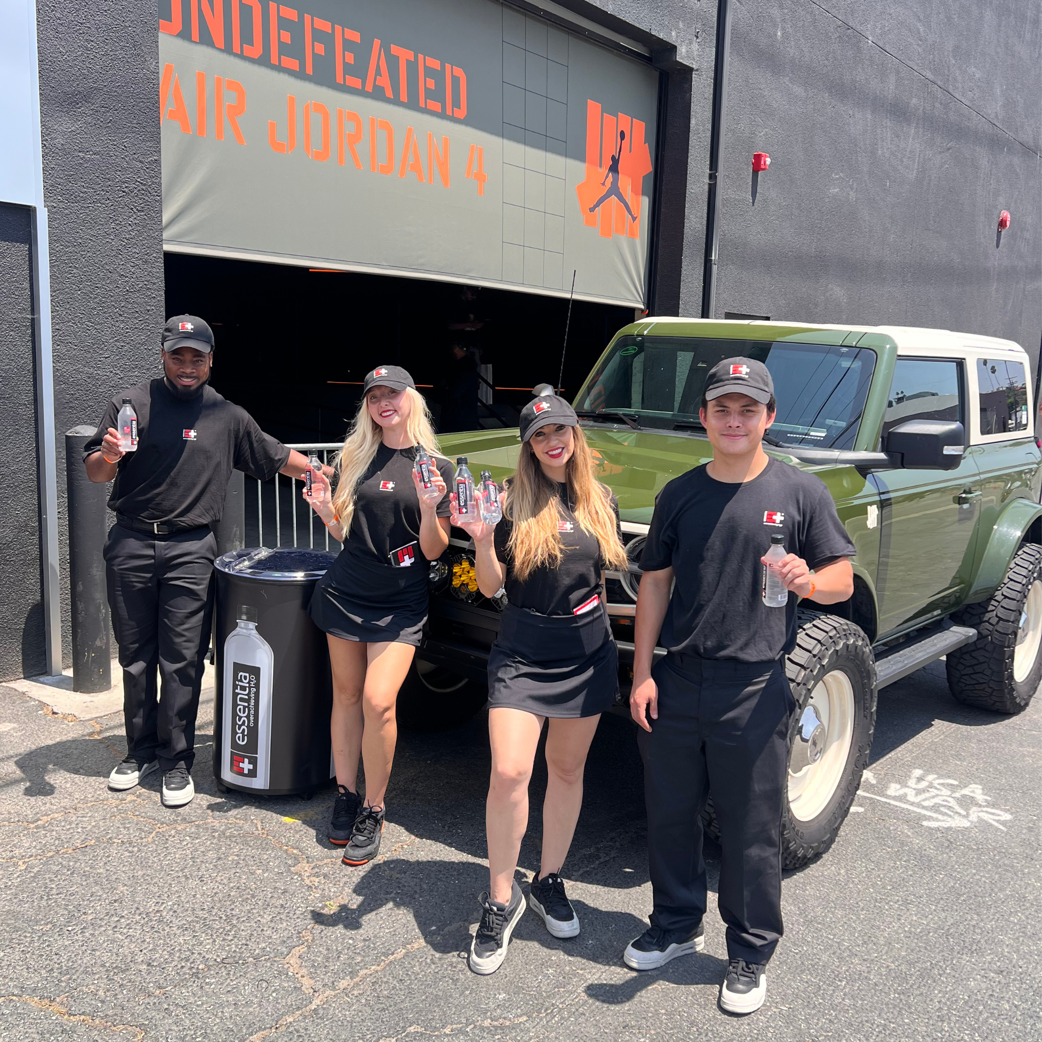 Support the UNDEFEATED x Air Jordan 4 Friends & Family launch in Downtown LA by sampling Essentia Water and Maison Perrier, in order to keep attendees comfortable in heat while driving positive brand engagement in a fast-moving, high-traffic environment.