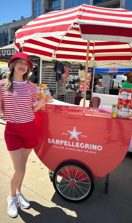 Attendees were invited to sample Sanpellegrino’s new zero sugar added Italian Sparkling Drinks, with brand reps distributing complimentary cans and sharing the story behind the product. QR codes on-site linked directly to Amazon, giving consumers instant access to a discount and a seamless path to purchase.